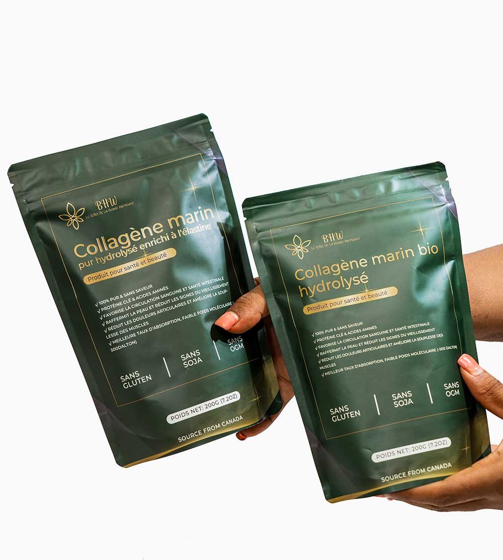 Les deux produits utilisent du collagène marin hydrolysé à faible poids moléculaire, permettant une absorption efficace et une intégration facile dans l’organisme.